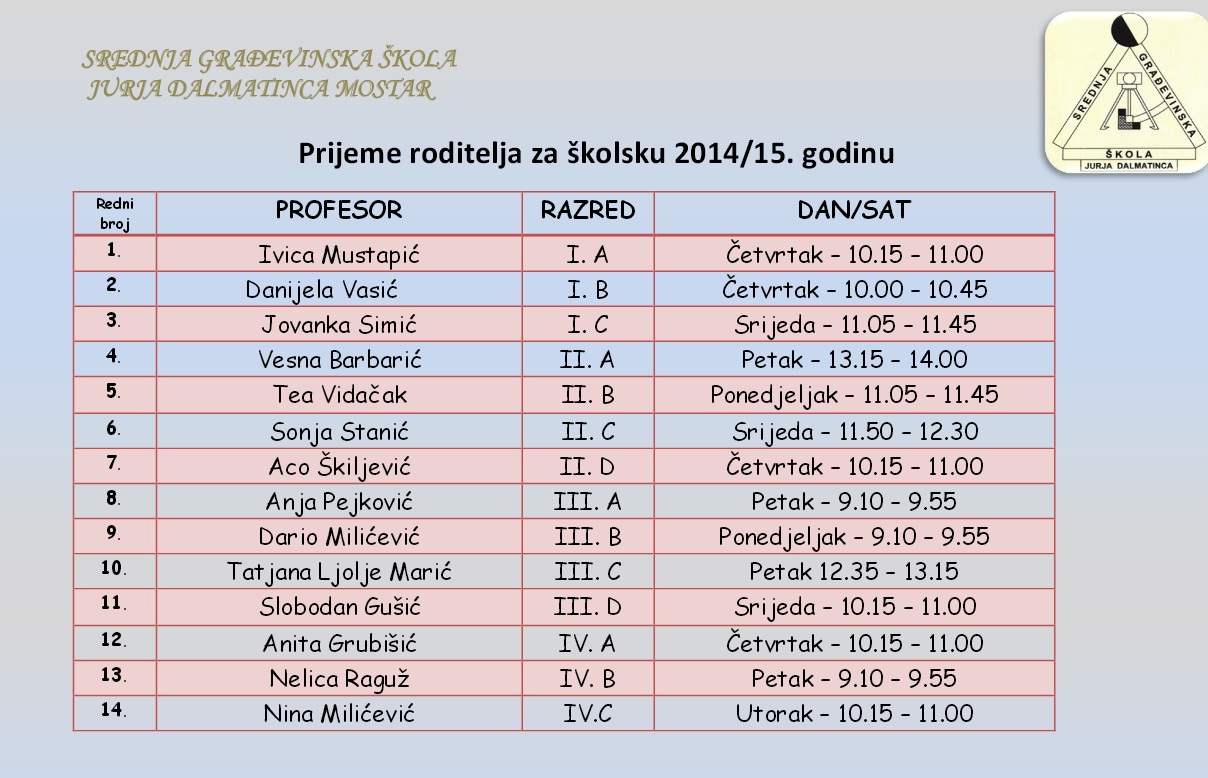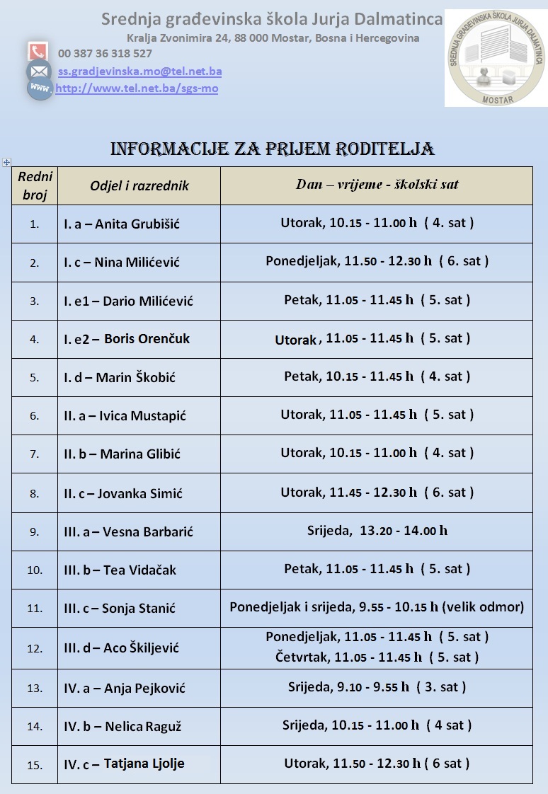| IME I PREZIME RAZREDNIKA | Razred | Dan | Sat | |